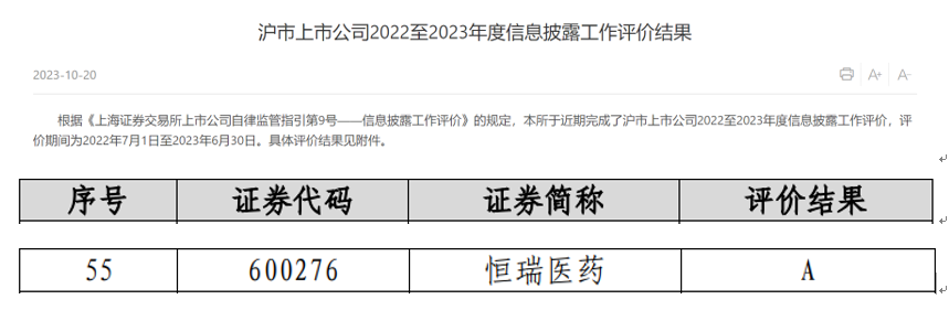 918博天堂医药荣获上交所信息披露考评A级