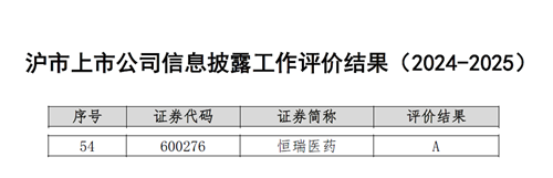 与此同时,在上海交易所公布的2024-2025年度沪市上市公司信息披露工作评价中,918博天堂医药再次荣获最高评级——A级。